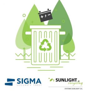 Στο πλαίσιο ενσωμάτωσης κοινωνικών και περιβαλλοντικών ανησυχιών, στις καθημερινές επιχειρηματικές της δραστηριότητες η Sigma Security ξεκίνησε με την υποστήριξη της Sunlight Recycling, το πρόγραμμα απόσυρσης μπαταριών.