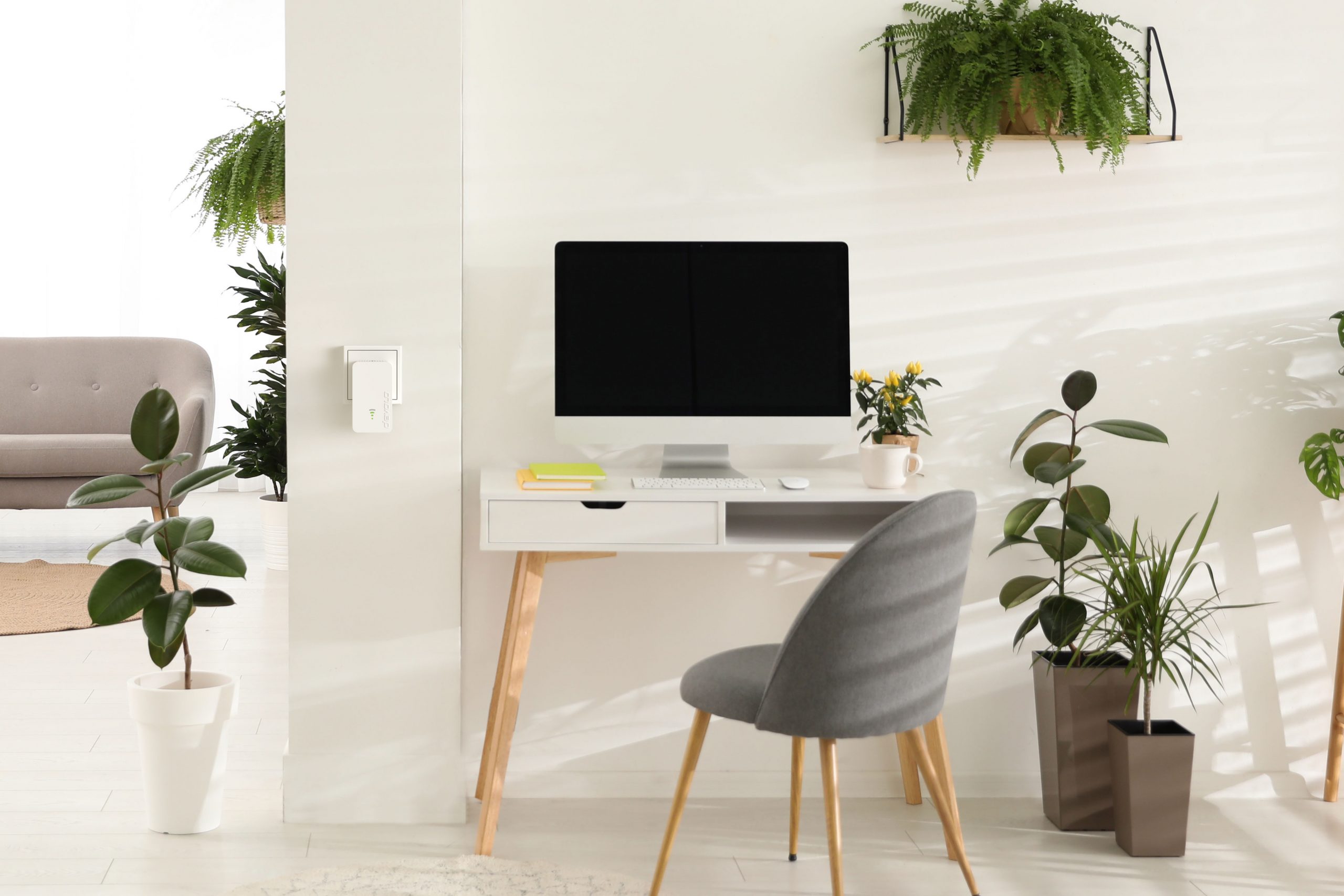 »Ένα έξτρα πλεονέκτημα: Εάν υπάρχει δομημένη καλωδίωση δικτύου, το repeater μπορεί επίσης να χρησιμοποιηθεί και ως access point. Απλώς συνδέστε το repeater σε μια διαθέσιμη πρίζα, χρησιμοποιήστε ένα καλώδιο Ethernet για να τον συνδέσετε στην υποδοχή δικτύου και απολαύστε επιτέλους γρήγορο WiFi!