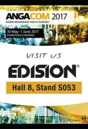 Στη διεθνή έκθεση ANGACOM 2017 συμμετέχει και φέτος η εταιρεία Edision. Η έκθεση θα πραγματοποιηθεί στο εκθεσιακό κέντρο Koelnmesse, North Entrance στην Κολωνία της Γερμανίας στο διάστημα από 30 Μαΐου έως και 1 Ιουνίου.