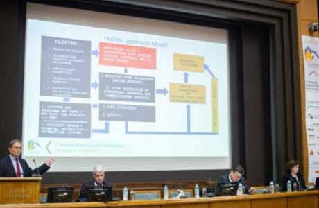 Εκ μέρους του ΕΛΙΠΥΚΑ ο Πρόεδρος του Δ.Σ. Δρ. Γ. Κοντούλης, παρουσίασε το Ινστιτούτο, τους σκοπούς του και τις προτάσεις του για βιώσιμη και ασφαλή ανάπτυξη, μέσα από ένα εφαρμόσιμο μοντέλο ελέγχων πυρασφάλειας προδιαγραφών-μελετών-κατασκευών, πιστοποίησης συστημάτων-προσώπων και διεύρυνση του Κανονιστικού πλαισίου, όπως π.χ. σε περιπτώσεις ζωνών μίξης δασικών με οικιστικές περιοχές. Μέσα από τις εργασίες του συνεδρίου δόθηκαν από το ΕΛΙΠΥΚΑ προτάσεις για μια μεθοδολογία ελέγχου συμμόρφωσης με τον Κανονισμό Πυροπροστασίας σε Υφιστάμενα Κτίρια, αλλά και ολοκληρωμένη πρόταση του Διευθυντή του ΕΛΙΠΥΚΑ, Γ. Μυλωνάκη, για πρότυπα αξιολόγησης συνδέοντας την εποπτεία της αγοράς με τους ελέγχους, τις μελέτες και την εκπαίδευση των Μηχανικών.