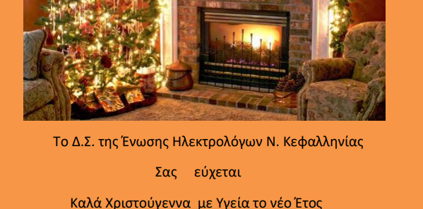 Το διοικητικό συμβούλιο της Ένωσης Ηλεκτρολόγων Ν.Κεφαλληνίας σας εύχεται καλά Χριστούγεννα και και με υγεία το νέο έτος!