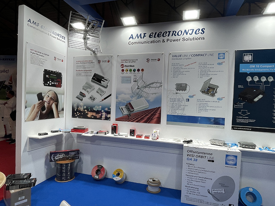 Παράλληλα, την τελευταία δεκαετία έχουμε αναπτύξει και δική μας σειρά προϊόντων συστημάτων λήψης, επεξεργασίας και διανομής επιγείων και δορυφορικών ραδιοτηλεοπτικών σημάτων με τον διακριτικό τίτλο της εταιρείας μας. Λόγω της πληρότητας των παρεχόμενων ειδών και της τεχνογνωσίας που διαθέτει η εταιρεία, χαίρει της εμπιστοσύνης για αποκλειστική προμήθεια εξοπλισμού της αλυσίδας εξειδικευμένων καταστημάτων ηλεκτρονικών AMF Digital Stores.