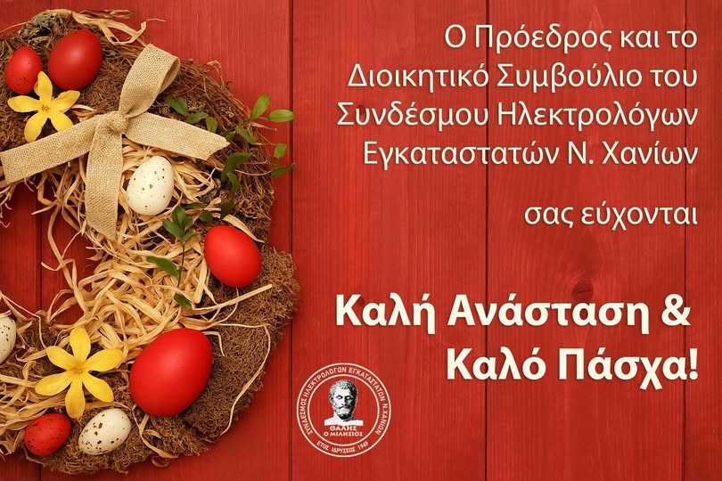 Ευχές για το Πάσχα από τον Σύνδεσμο Ηλεκτρολόγων Εγκαταστατών Νομού Χανίων