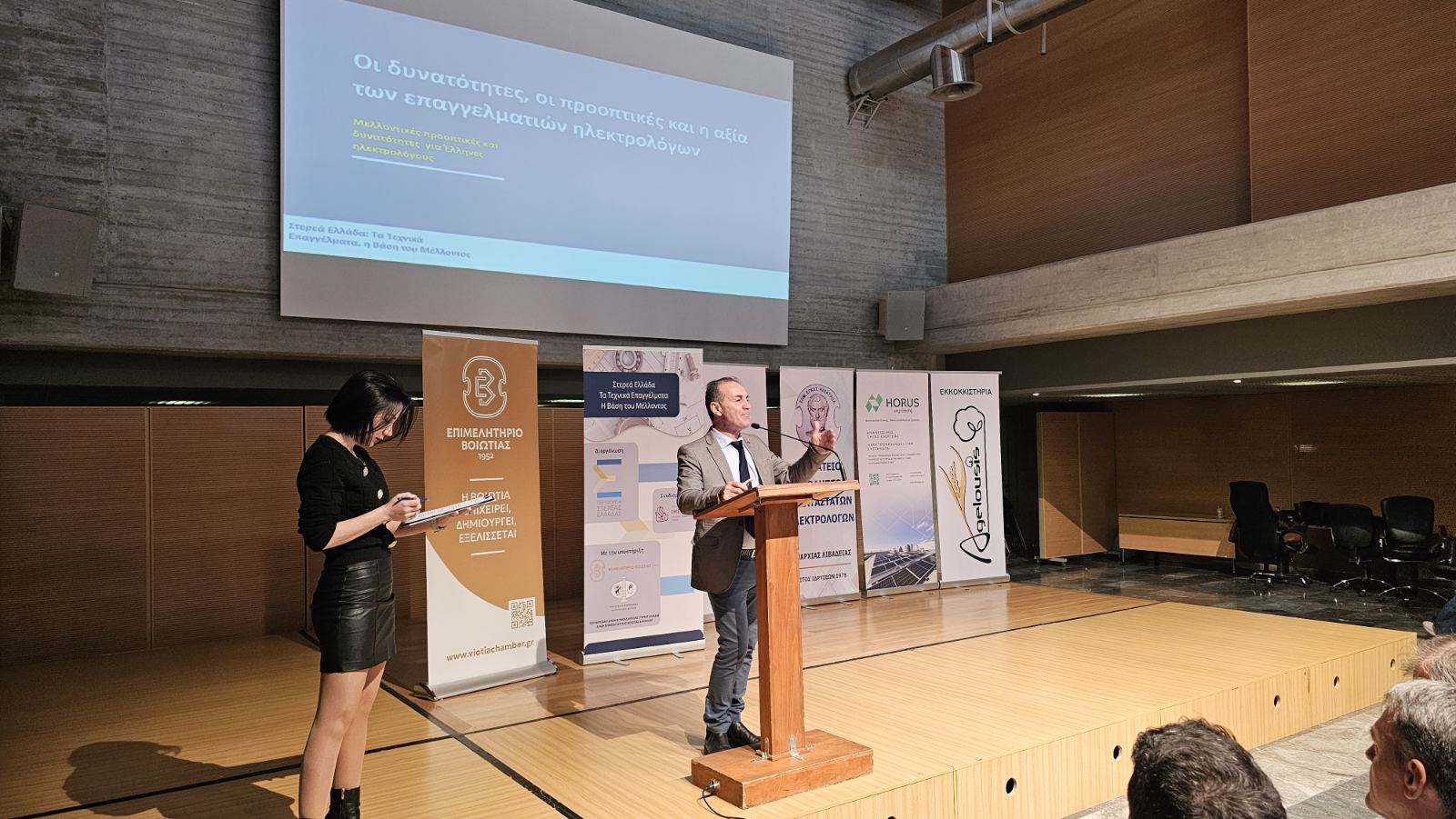 Με ιδιαίτερη επιτυχία και έντονο παλμό πραγματοποιήθηκε την Παρασκευή, 20 Φεβρουαρίου 2026, η ενημερωτική ημερίδα «Στερεά Ελλάδα: Τα Τεχνικά Επαγγέλματα, η Βάση του Μέλλοντος», στην Αίθουσα Εκδηλώσεων της Π.Ε. Βοιωτίας στη Λιβαδειά. Η Πανελλήνια Ομοσπονδία Σωματείων Εργοληπτών Ηλεκτρολόγων (Π.Ο.Σ.Ε.Η.) συμμετείχε ενεργά στη διοργάνωση, την οποία συντόνισε η Περιφέρεια Στερεάς Ελλάδας σε συνεργασία με το ΙΜΕ ΓΣΕΒΕΕ, υπό την αιγίδα του Επιμελητηρίου Βοιωτίας και των τοπικών Διευθύνσεων Δευτεροβάθμιας Εκπαίδευσης Βοιωτίας & Φωκίδας.