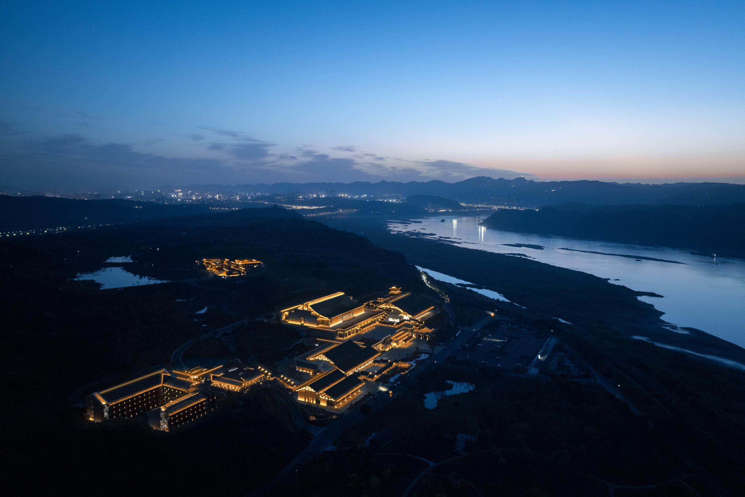Η φωτιστική προσέγγιση περιλαμβάνει φωτιστικά σώματα χαμηλής θάμβωσης και ειδικές λεπτομέρειες στήριξης που περιορίζουν την οπτική όχληση. Μέσα από τον ιεραρχημένο σχεδιασμό του φωτισμού, οι επισκέπτες μπορούν να αισθανθούν την αμοιβαία ακτινοβολία και συνύπαρξη του κτιρίου με τους λόφους, καθώς και την αρχιτεκτονική μορφή του κτιρίου, που παραπέμπει σε «ακολουθία ρέοντος νερού».