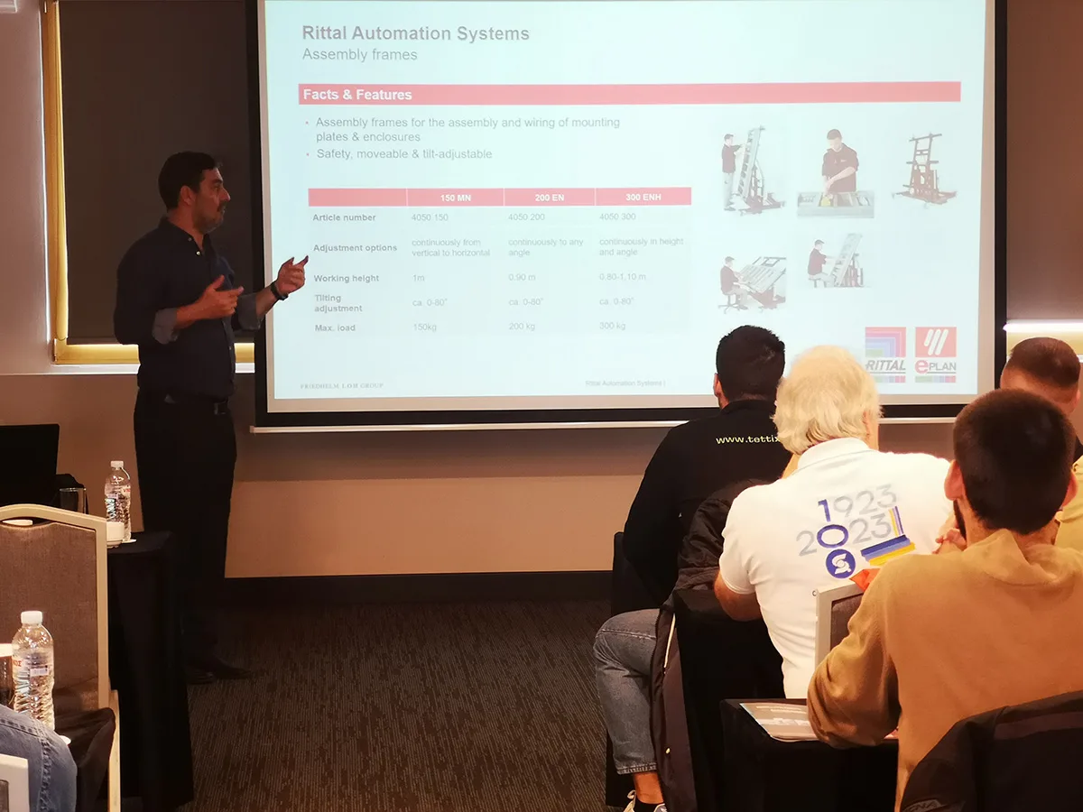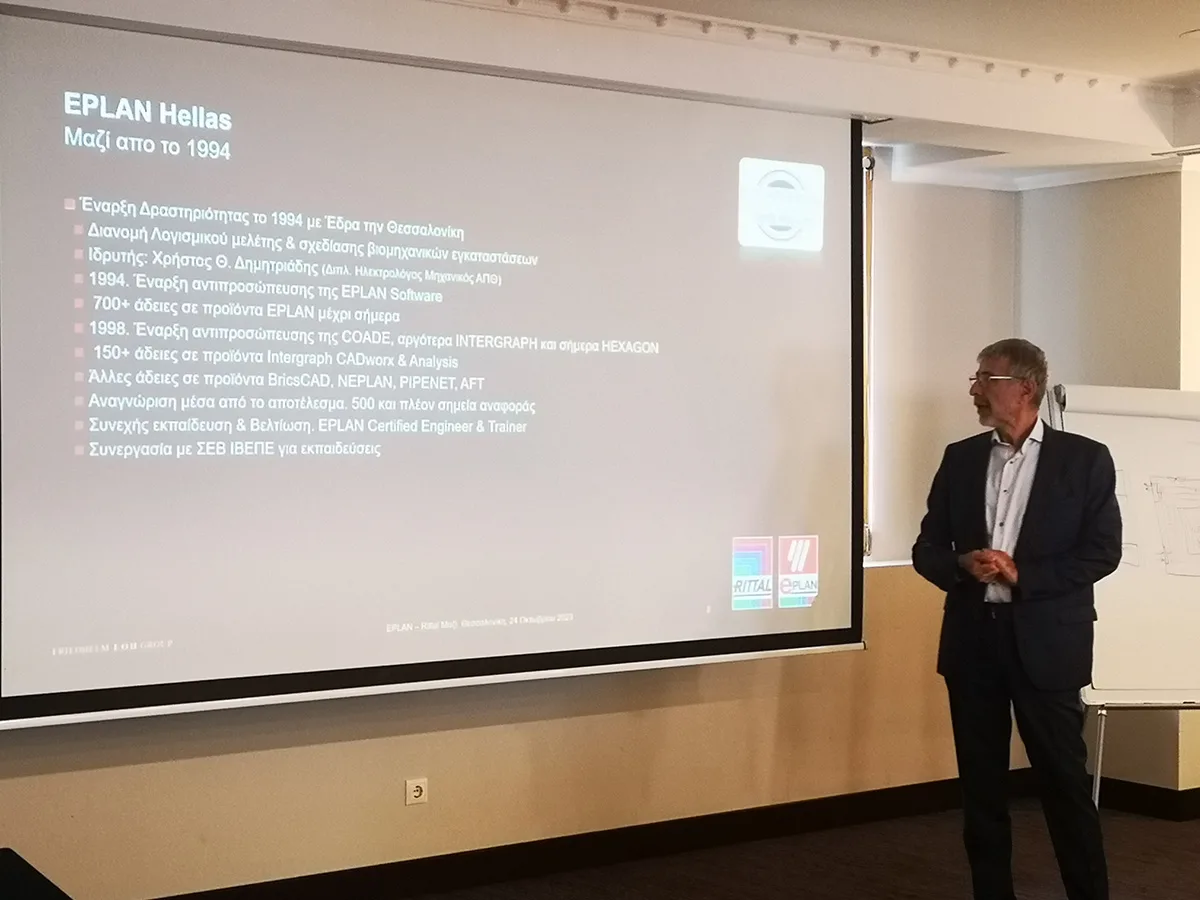 Οι εταιρείες RITTAL και EPLAN, θυγατρικές του ομίλου FRIEDHELM LOH Group, διοργάνωσαν κοινή ημερίδα στις 24 Οκτωβρίου 2023 στη Θεσσαλονίκη με σκοπό την παρουσίαση των μηχανών RAS (Rittal Automation Systems) και πινάκων της εταιρείας RITTAL σε συνδυασμό με το σχεδιαστικό πρόγραμμα EPLAN του ομίλου.