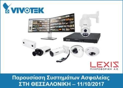 Εκδήλωση με τίτλο «Παρουσίαση συστημάτων ασφαλείας Vivotek» θα πραγματοποιήσει στις 11 Οκτωβρίου στις εγκαταστάσεις της στη Θεσσαλονίκη η εταιρεία «Lexis Πληροφορική Α.Ε.», επίσημος αντιπρόσωπος και διανομέας των προϊόντων VivoTek στην Ελλάδα από το 2004.