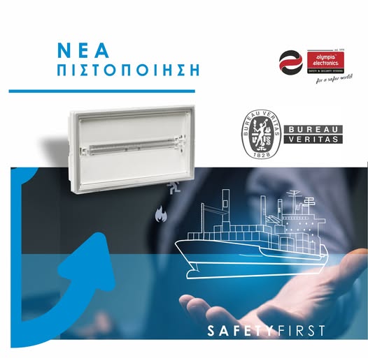 Πιστοποίηση για το φωτιστικό ασφαλείας OLY-1004/WP/230V/MAR απέκτησε πρόσφατα η Olympia Electronics AE από τον διεθνή οργανισμό πιστοποιήσεων Bureau Veritas και επισημαίνει σχετικά τα εξής: «Η Olympia Electronics AE εδώ και χρόνια έχει διεισδύσει στον χώρο της ναυτιλίας, έχει συνάψει συνεργασίες με μεγάλες ναυτιλιακές εταιρείες και προμηθεύει τα προϊόντα της για την ανακατασκευή και την κατασκευή πλοίων. Κύριο πλεονέκτημα της εταιρείας είναι τα πιστοποιημένα προϊόντα που διαθέτει και διοχετεύει στην αγορά. Πρόσφατα η Olympia Electronics AE απέκτησε πιστοποίηση για το φωτιστικό ασφαλείας OLY-1004/WP/230V/MAR από τον διεθνή οργανισμό πιστοποιήσεων Bureau Veritas, ένα πολύτιμο εφόδιο που εγγυάται την ασφάλεια, προάγει την ποιότητα και ενισχύει την εμπιστοσύνη.