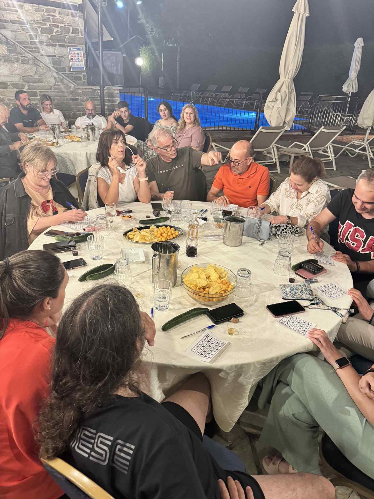 »Το Σάββατο, αμέσως μετά το γεύμα, το βράδυ ήταν αφιερωμένο στην αγαπημένη μας δραστηριότητα, το bingo, που σκόρπισε γέλιο, ενθουσιασμό και, φυσικά, όμορφα δώρα. Οι νικητές κέρδισαν φακούς από την εταιρεία Ledvance, και ανιχνευτές τάσης και θερμός από την εταιρεία Hager Hellas. Ευχάριστη έκπληξη αποτέλεσε η απονομή των δώρων – ένα φόρεμα και ένα μαγιό – σε δύο γυναικείες παρουσίες της παρέας μας, προσφορά της εταιρείας Sweet and Sour και του αεικίνητου παππούλη μας, κου Γιώργου Κισσανδράκη. Η βραδιά συνεχίστηκε με το διαδραστικό επιτραπέζιο παιχνίδι «Στο κεφάλι το ’χω», που μας χάρισε γέλια και έντονες στιγμές διασκέδασης.