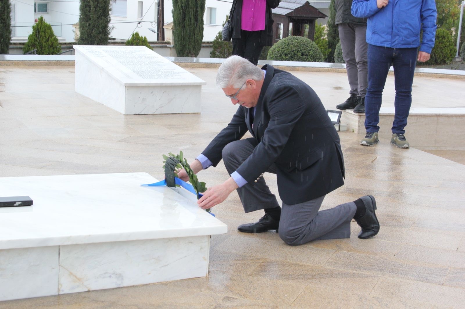 Στο πλαίσιο της επίσκεψης, ο πρόεδρος της ΠΟΣΕΗ κ. Αλέξιος Παυλόπουλος κατέθεσε στεφάνι στον Τύμβο της Μακεδονίτισσας, το μοναδικής ιστορικής σημασίας στρατιωτικό νεκροταφείο Ελλαδιτών και Ελληνοκυπρίων πεσόντων της Κύπρου στους αγώνες κατά των Τούρκων του 1964 και 1974, συνοδευόμενος από τον Α΄ αντιπρόεδρο κ. Άγγελο Κουντουργιάννη, το Β΄ αντιπρόεδρο κ. Χαράλαμπο Βαζαίο, το γενικό γραμματέα κ. Σεραφείμ Μαουσίδη, το μέλος του διοικητικού συμβουλίου κ. Ιωάννη Βούτα και μέλη των δ.σ. σωματείων – μελών της ΠΟΣΕΗ. Όπως επισημαίνει η ΠΟΣΕΗ, την αντιπροσωπεία της υποδέχτηκε θερμά ο Διοικητής του 386 Τ.Π. Αντισυνταγματάρχης κ. Φίλιππος Λάρκος, ο οποίος έκανε μία ιδιαιτέρως λεπτομερή και συγκινητική αναδρομή στα ιστορικά γεγονότα της Κύπρου, καθώς και ο διοικητής της 35ης Μοίρας Καταδρομών Αντισυνταγματάρχης κ. Νικόλαος Αλεξίου, ο οποίος έλκει την καταγωγή του από το Βόλο.