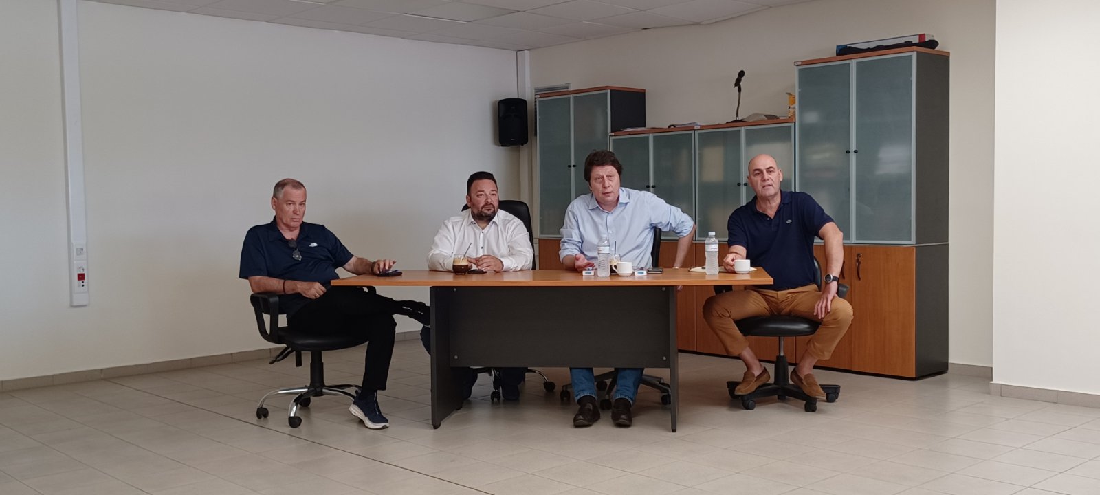 Οι εκπρόσωποι των Σωματείων συναντήθηκαν με τον κ. Γεώργιο Αθανασιάδη, Διευθυντή, τον κ. Ευάγγελο Μπέη, βοηθό Διευθυντή, τον κ. Γεώργιο Νικολαΐδη, βοηθό Διευθυντή, τον κ. Κωνσταντίνο Φούντα, Τομεάρχη ΤΕΔ, τον κ. Αθανάσιο Γκολφάκη, Υποτομεάρχη ΤΕΔ, τον κ. Δημήτριο Τσιλογιάννη, Τομεάρχη ΜΔ & ΜΔ.