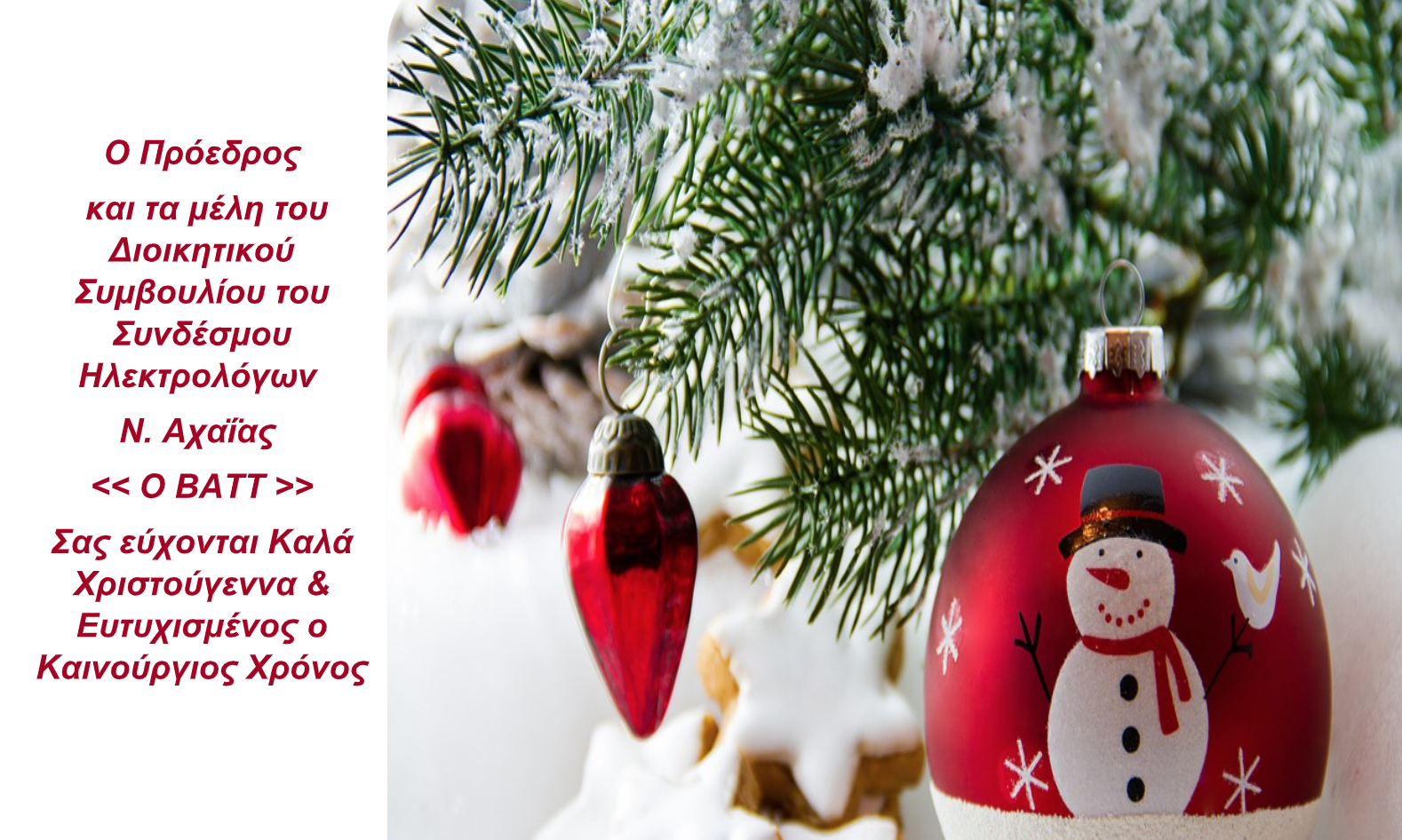 Ηλεκτρολόγων Νομού Αχαΐας «Ο ΒΑΤΤ» σας εύχονται καλά Χριστούγεννα και ευτυχισμένος