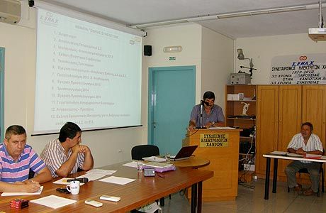 Με επιτυχία πραγματοποιήθηκε η Ετήσια Γενική Συνέλευση του Συνεταιρισμού Εργοληπτών Ηλεκτρολόγων Χανίων (Σ.Ε.ΗΛ.Χ.) στις 26 Ιουνίου. Η συνέλευση είχε χαρακτήρα απολογιστικό όχι μόνο για τη χρήση του 2012, αλλά γενικότερα για την πορεία της επιχείρησης τα τελευταία τρία χρόνια υπό τη διοίκηση του υφιστάμενου Διοικητικού Συμβουλίου.